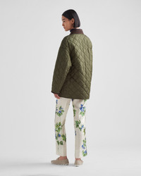 The pragmatic design of this quilted jacket reinterprets a classic silhouette with a contemporary cut enriched with refined touches. Made of Re-Nylon, the innovative regenerated nylon fabric that is distinctive of Prada collections, the jacket is embellished with a collar and trim in contrasting corduroy. The enameled metal triangle logo adds an iconic note to the versatile style with refined details. For sustainable care to preserve the product's characteristics and reduce microfiber shedding, we recommend not washing the item too often. Let the product air out after every use and have it dry cleaned at a specialized ecological dry cleaners. - Product code: 292166_1WQ9_F0161_S_OOO - Unlined - Shirt-style collar - Long sleeves - Straight cuff - Snap closure - Enameled metal triangle logo - Quilted external fabric - Corduroy collar and pocket and sleeve trim - Regular fit, the garment fits the indicated size - Imported Height: 75cm MATERIALS Nylon