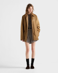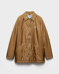 The pragmatic simplicity of workwear inspires the design of this blouson jacket made of Re-Nylon. Prada's emblematic fabric underlines the functional and multipurpose nature of the style characterized by a light, versatile silhouette. For sustainable care to preserve the product's characteristics and reduce microfiber shedding, we recommend not washing the item too often. Let the product air out after every use and have it dry cleaned at a specialized ecological dry cleaners. - Product code: 29Y287_1WQ9_F0594_S_OOO - Shirt-style collar - Raglan sleeves - Button closure - Patch pockets - Printed lettering logo - Oversized fit - Removable fleece lining - Sleeve lining: lightweight Re-Nylon with padding - Imported - The model is 178 cm tall and wears a size 38 Height: 78cm MATERIALS Main material: 100% recycled polyamide
