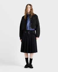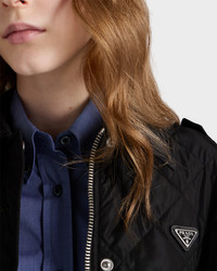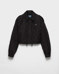 This blouson jacket features a cropped silhouette and is characterized by classic details reinterpreted in a contemporary way. The versatile garment made of quilted Re-Nylon is completed by the enameled metal triangle logo. For sustainable care to preserve the product's characteristics and reduce microfiber shedding, we recommend not washing the item too often. Let the product air out after every use and have it dry cleaned at a specialized ecological dry cleaners. - Product code: 29C261_1WQ9_F0002_S_OOO - Shirt-style collar - Long sleeves - Buttoned cuffs - Zipper closure and buttons - Side pockets - Drawstring on the hem - Quilted garment - Epaulette with button - Conceptual logo with enameled metal triangle - Imported Height: 53cm MATERIALS Main material: 100% recycled polyamide