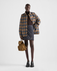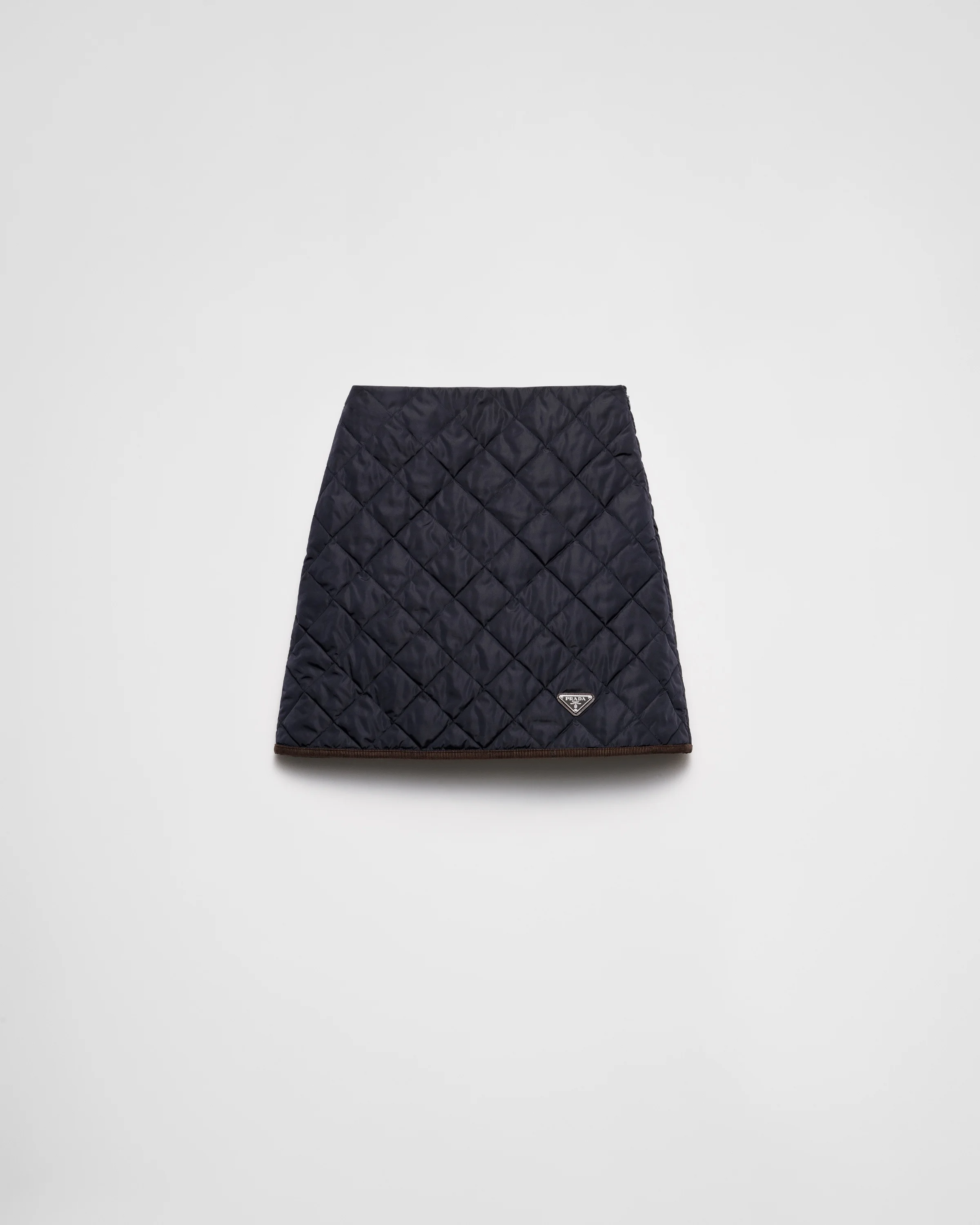 Details inspired by outerwear enrich the silhouette of this miniskirt with a dual aesthetic, made of quilted Re-Nylon and decorated with the iconic triangle logo. For sustainable care to preserve the product's characteristics and reduce microfiber shedding, we recommend not washing the item too often. Let the product air out after every use and have it dry cleaned at a specialized ecological dry cleaners. - Product code: 21Y933_1WQ9_F0008_S_OOO - Zipper and hook closure - Enameled metal triangle logo - Regular waist - Quilted fabric exterior - Back slits with snaps - Velvet trim - The fabric is made with regenerated yarn, obtained from recycled plastic materials collected in the ocean - Imported - The model is 178 cm tall and wears a size 38 Height: 45cm MATERIALS Main material: 100% recycled polyamide