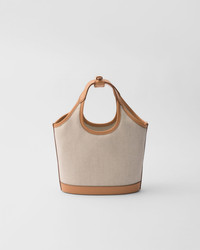 Linen blend and leather mini-buckle bag