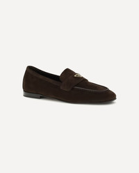 Suede Loafers by Prada are embellished with the iconic logo-embossed metal triangle on the vamp. The round toe and printed logo on the inside complete an essential yet sophisticated design. Made from high-quality materials, they combine comfort and unmistakable style, perfect for any occasion. DETAILS - Sku: 1D147OF010103_F0003 - Season: AW25 - Composition: GENERAL 100% Calf Leather Bos Taurus - MADE IN ITALY