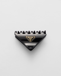 A sleek, sophisticated design defines this claw clip decorated with the triangle logo. - Product code: 1IF175_2CN4_F0002 - Enameled metal triangle logo - Imported Height: 5.2cm Width: 8.5cm MATERIALS Main material: Methacrylate brass