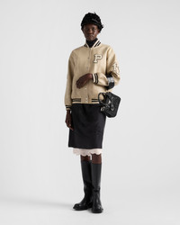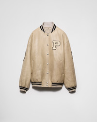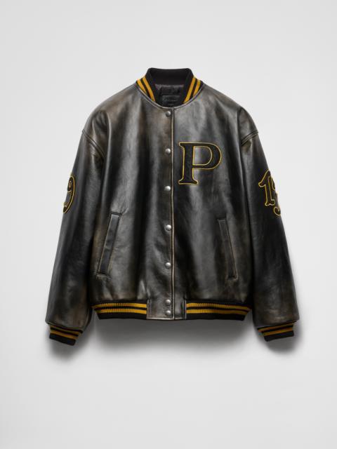 Leather bomber jacket with patch