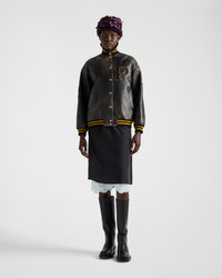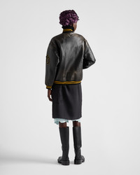Leather bomber jacket with patch