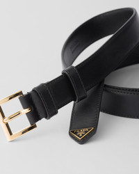 This luxury leather belt is defined by a refined, minimalist elegance. The tip is enhanced by an iconic, enameled-metal triangle logo. - 商品货号: 1CC543_8NQ_F0632 - Metal buckle - Enameled-metal triangle logo - 产品标签信息 高度: 2.5cm MATERIALS Leather