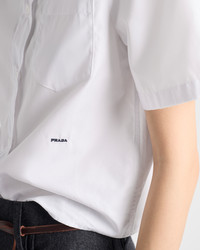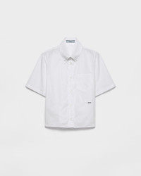 This simple shirt accompanies the body's movements. The straight cut and clean hem are combined with the discreet embroidery, creating a free silhouette with spontaneous elegance. - Product code: P477IR_1XV2_F0009_S_OOO - Straight fit - Unlined - Shirt collar - Front button closure - Short sleeves - Patch pocket on the front - Embroidered Prada logo - Straight hem - Imported - The model is 178 cm tall and wears a size 38 Height: 49cm MATERIALS Main material: 100% cotton