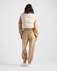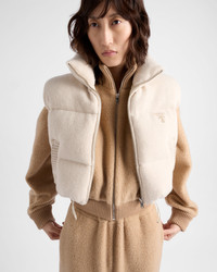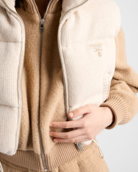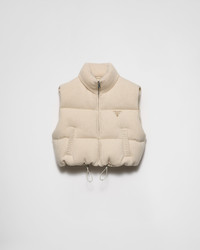 This wool and cashmere vest, a hybrid design blending functionality and sophistication, is characterized by the stand-up collar and goose down padding that gives the style a soft volume. - Codigo de producto: 29M056_1Y02_F0304_S_OOO - Goose down padding - Stand-up collar - Zipper closure - Welt zipper pockets - Elasticized drawstring hem - Enameled metal triangle logo - Lightweight Re-Nylon lining - Internal zipper pocket - Regular fit: true to size - Importado Altura: 45cm MATERIALS Wool