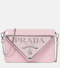 This compact shoulder bag from Prada has a detachable chainlink shoulder strap. Made from calf leather with a polished finish, it's embellished with an oversized triangular logo patch. Product Details - Internal details: internal slot pocket, leather lining - Made in Italy - Designer color name: Alabastro N - Comes with dust bag - Color of fastening: silver - Closure: snap-clasp fastening - Detachable, adjustable shoulder strap, Chain shoulder strap - Trim: brass - Material: calf leather - Color of strap: silver - Item number: P00630195 Size & Fit - Height 11,5cm-4.5" - Width 17cm-6.5" - Depth 4cm-1.5" - Chain length 112cm-44"