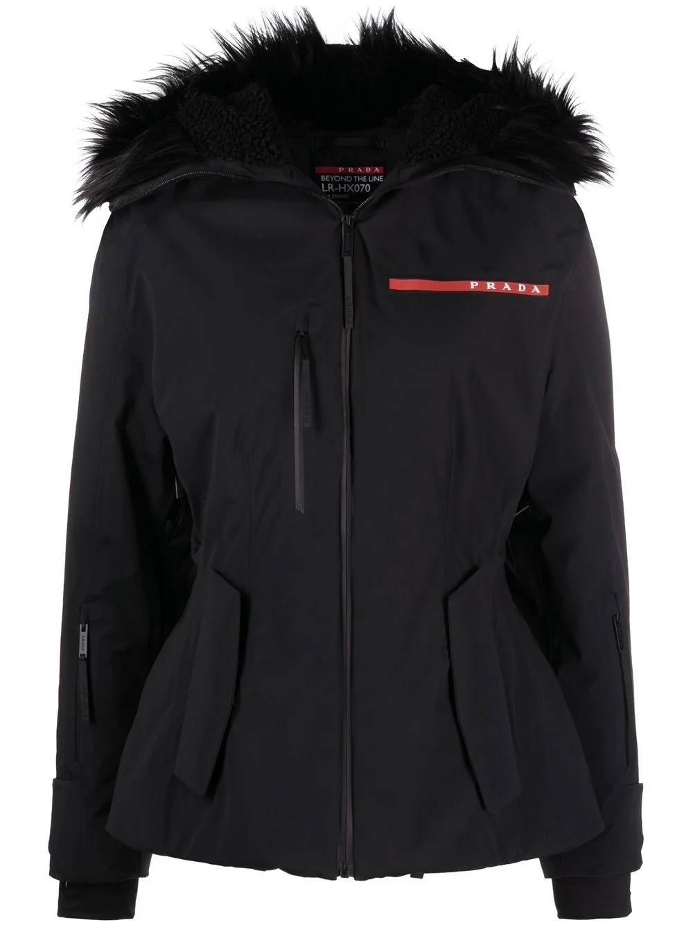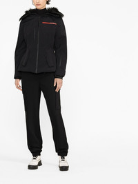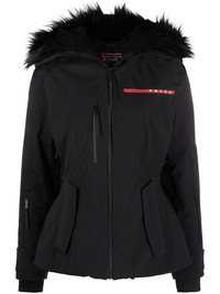 logo-patch hooded jacket Featuring the Linea Rossa logo at the chest, this hooded jacket is instantly recognisable as Prada, whilst a classic hood and fur trim add a functional element to the design. Composition Outer: Recycled Polyester 100%, Recycled Polyamide 98%, Elastane 2% Lining: Recycled Polyamide 100%, Polyester 45%, Recycled Polyester 35%, Acrylic 20% SIZE & FIT Model measurements Height 5 ft 10 in(1.78 m) Bust/Chest 30.7 in(78 cm) Hips 34.64 in(88 cm) Waist 23.22 in(59 cm) FittingInformation This piece fits true to size. We recommend you get your regular size Cut for a slim fit Made with a mid-weight fabric