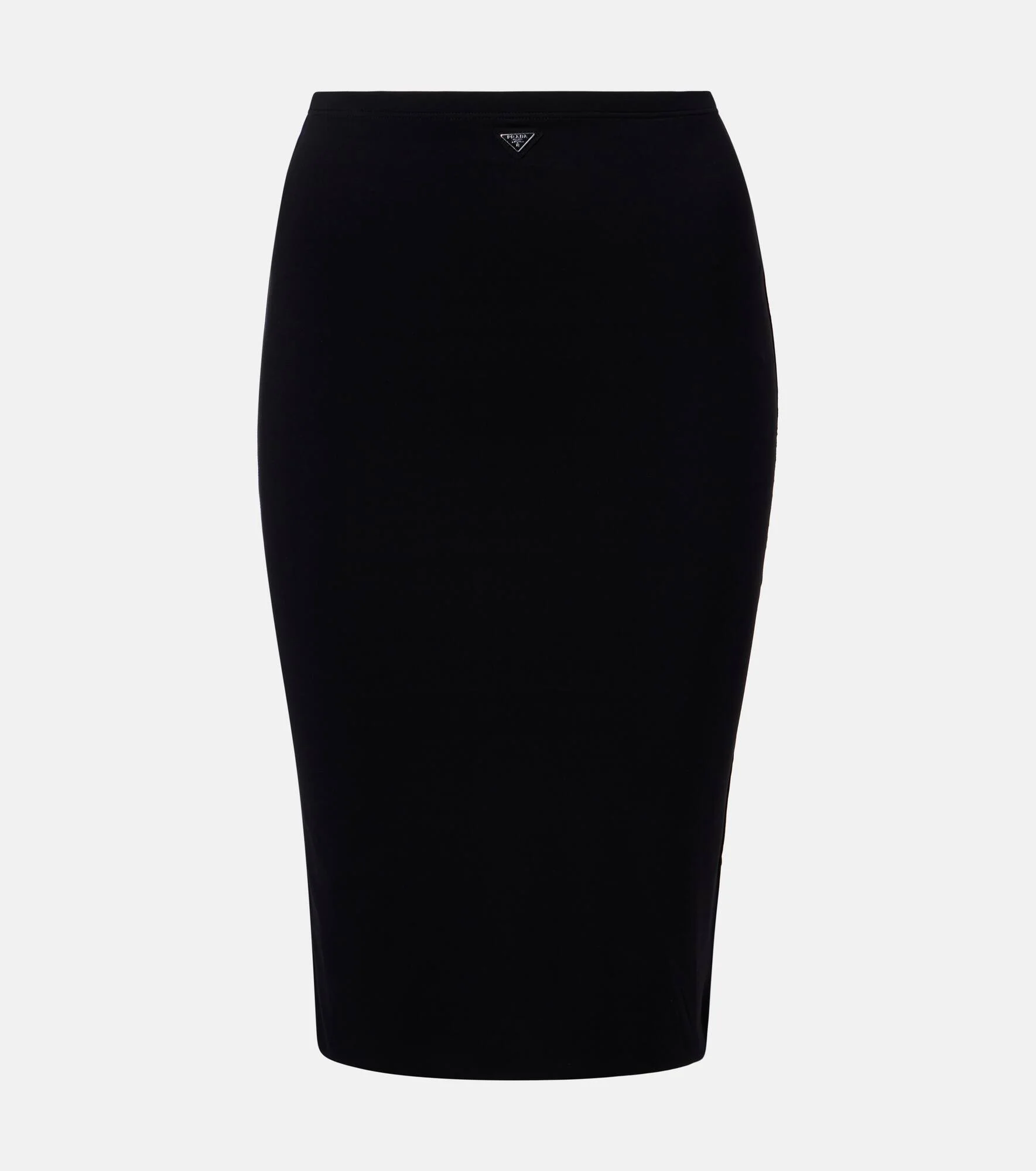 Make this pencil skirt from Prada your next elegant wardrobe building block. The timeless style is complete with an elasticated waistband and the iconic triangle logo detailing. Product Details - Material: 87% polyamide, 13% elastane - Care instructions: dry clean - Made in Italy - Designer color name: Nero - Item color: black - Elasticated waistband - Item number: P01069547 Size & Fit - True to size - Elasticated waist - Stretchy fabric - High-waisted - The model seen in the picture is 178cm-5'10" and wearing a size 1