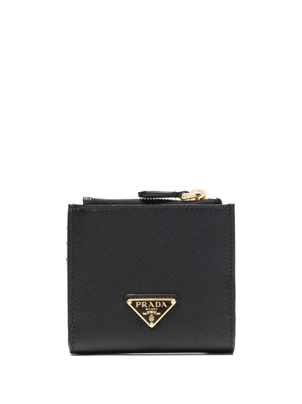 logo plaque compact wallet logo plaque compact wallet from PRADA featuring black, leather, logo plaque, gold-tone hardware and coin pocket. Composition Outer: Leather 100% SIZE & FIT Measurement DEPTH 0.39 in(1 cm) HEIGHT 3.93 in(10 cm) WIDTH 3.93 in(10 cm)