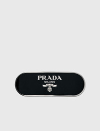 - Prada - Logo Hair Clip - Clip fastening - Enameled logo - Hypoallergenic and Nickel free materials - Color: Black - Material: Enameled Metal SIZING Approximate measurement: - Height: 2.5cm - Width: 7cm