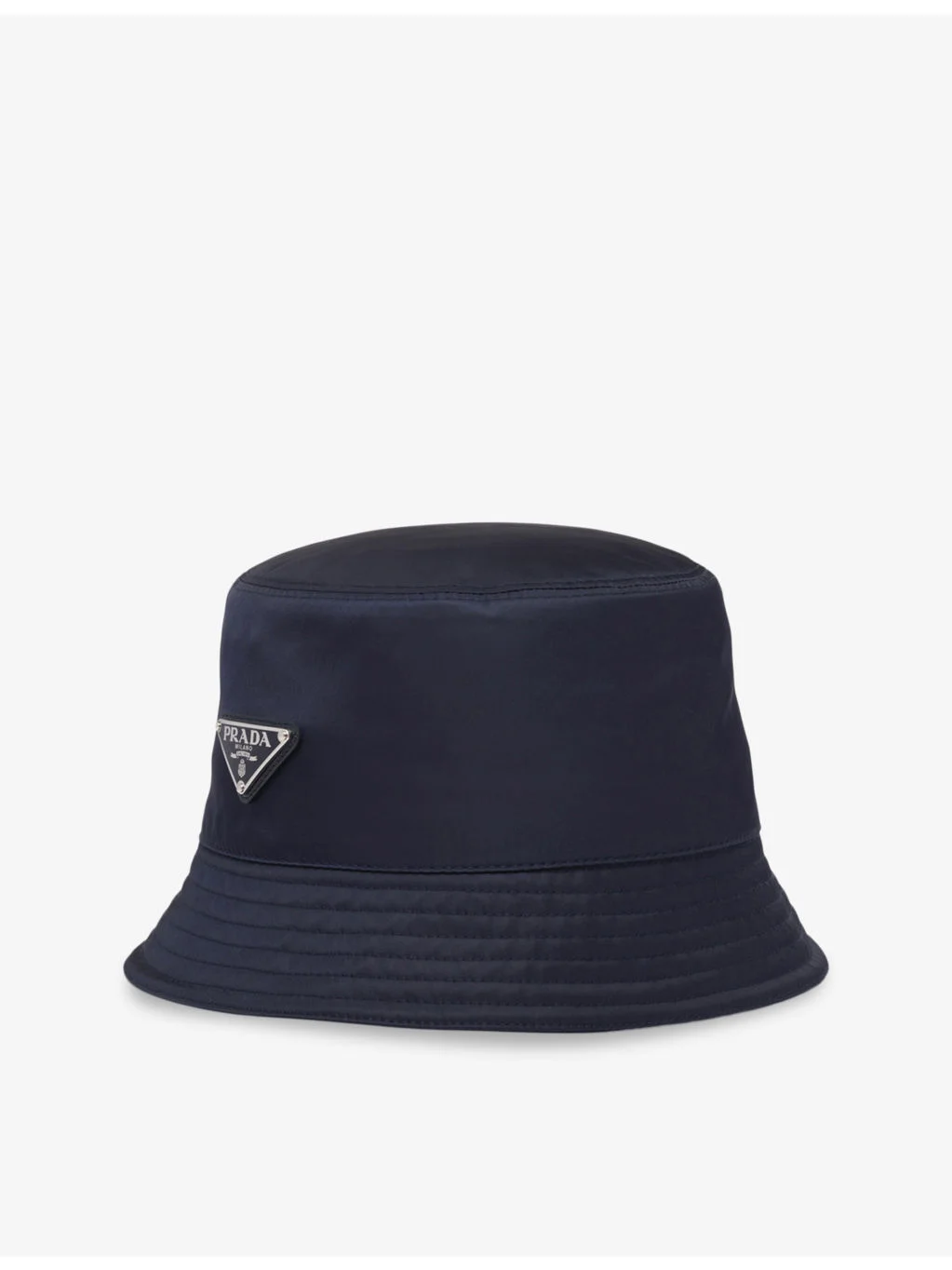 PRODUCT DETAILS - Prada recycled-nylon bucket hat - 100% recycled nylon; lining 100% cotton - Slips on - Classic silhouette, signature brand patch at front, ribbed brim, lined - Dry clean - Made in Italy - Lightweight, non-stretch - Comes with a dust bag