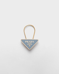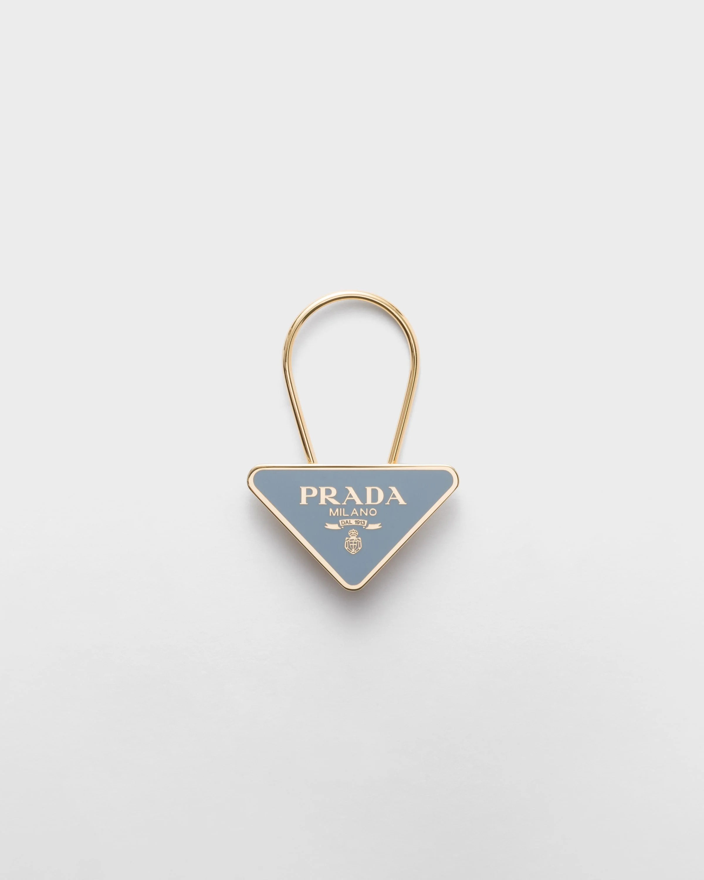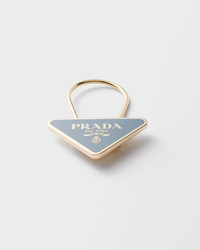 The sleek and iconic geometric shape of the triangle logo defines this refined enameled metal key ring. - Product code: 1PS063_66A_F04ER - Enameled metal triangle logo - Imported Height: 7.1cm Width: 5cm MATERIALS Main material: Steel enamel