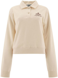 logo-embroidered long-sleeved polo shirt Highlights - Light beige - Cotton - Triangle logo - Embroidered logo at the chest - Polo collar - Front button placket - Long sleeves - Ribbed cuffs and hem Composition Cotton 100%