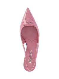 PRADA LOGO SLINGBACK PUMPS IN PINK BRUSHED LEATHER WITH POINTED TOE, TONE-ON-TONE PADDED LEATHER TRIANGLE LOGO, ELASTIC STRAP, SLIP-ON FIT, STILETTO HEEL, TONE-ON-TONE LEATHER SOLE. PRODUCT INFO PRODUCT CODE 1I901M DD55 XUWF0442 COMPOSITION: 100% CALF LEATHER SIZE AND FIT: HEEL HEIGHT 6.5 CM MADE IN: ITALY