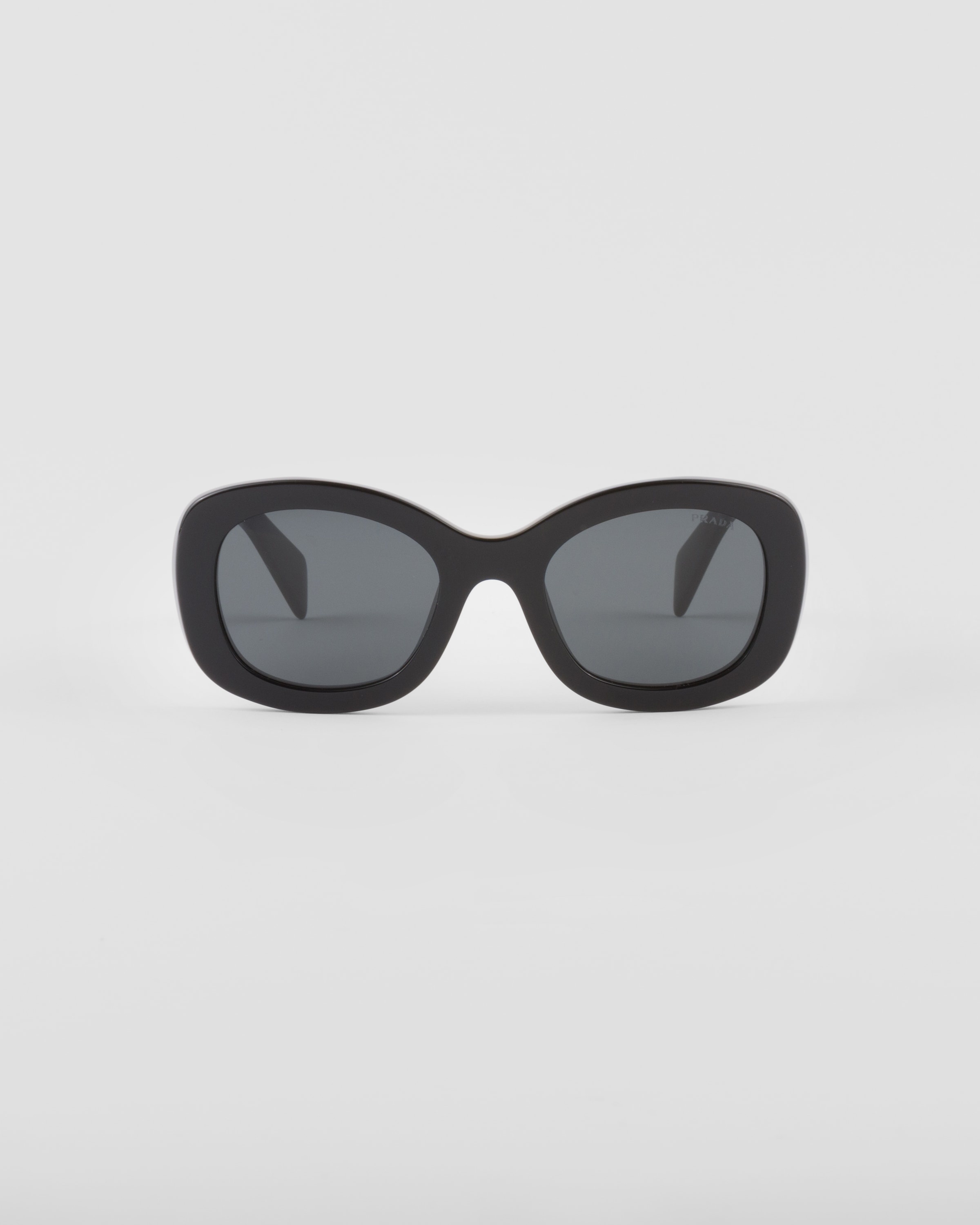 Acetate sunglasses characterized by an oversized design and rounded rectangular shape. The bold front rims are paired with chunky temples decorated with the Prada lettering logo. - Product code: SPRA13_E1AB_F05S0_C_054 - Acetate frame front - Color: Black - -Frame compatible with graduated lenses - 100% UVA / UVB protection - Standard fit - Lens-nose-temple measurement: 54-23-145 mm - Article accompanied by dedicated packaging - Other colors available - Imported MATERIALS Acetate