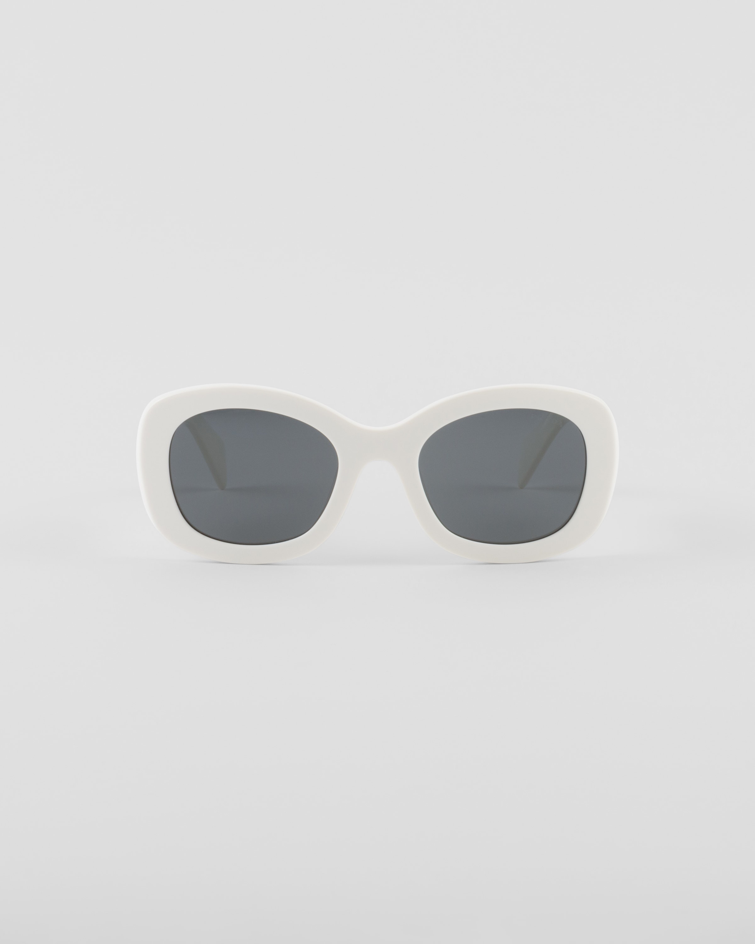 Acetate sunglasses characterized by an oversized design and rounded rectangular shape. The bold front rims are paired with chunky temples decorated with the Prada lettering logo. - Product code: SPRA13_E142_F05S0_C_054 - Acetate frame front - Color: Chalk White - Frame compatible with graduated lenses - 100% UVA / UVB protection - Standard Fit - Lens-nose-temple measurement: 54-23-145 mm - Article accompanied by dedicated packaging - Other colors available - Imported MATERIALS Acetate