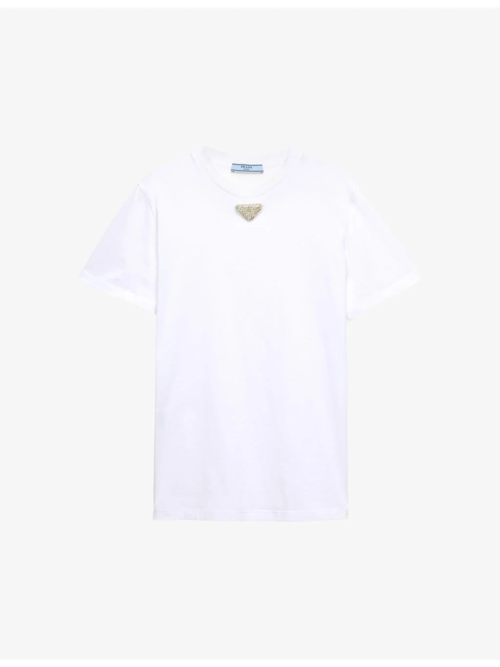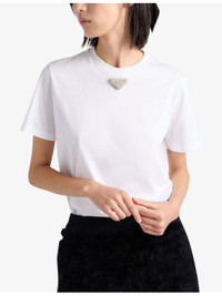 PRODUCT DETAILS - Prada cotton-jersey T-shirt - 100% cotton - Slips on - Regular fit, crewneck, ribbed trim at neck, short sleeves, embroidered triangle logo at chest - Machine wash cold - Model is 5ft 10in/1.78m and wears a size UK 8 - Lightweight, slight stretch Ref: R04401668