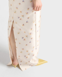 Long floral print silk and wool dress