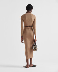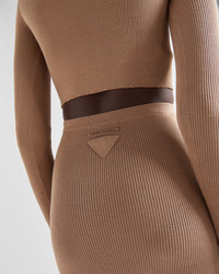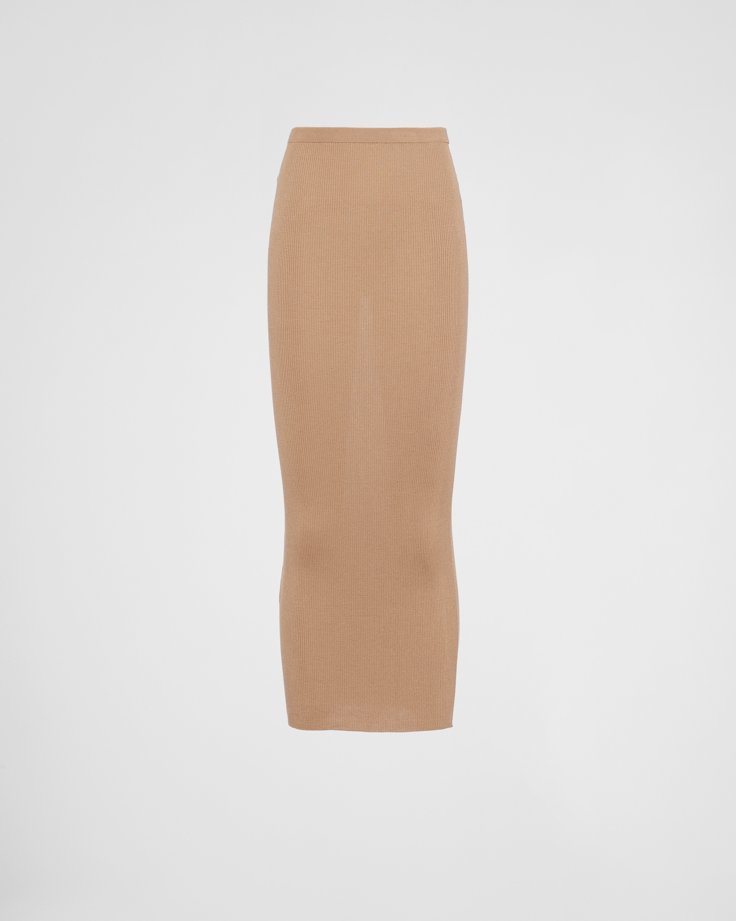 This pencil skirt expresses sleek sensuality. Pragmatism and everyday life inspire a series of simple silhouettes, creating new languages and balances. - Product code: 21439_11MZ_F0040_S_231 - Ribbed knit - Straight fit - Knit triangle logo and logo label - Imported - The model is 178 cm tall and wears a size 38 Height: 97cm MATERIALS Silk