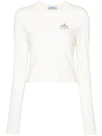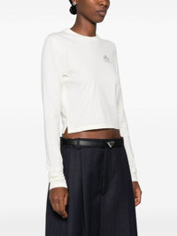ivory white cotton jersey texture ribbed crew neck long sleeves logo print at the chest straight hem Size & Fit Model Measurements: Height: 1.78 m Bust/Chest: 79.0 cm Hips: 89.0 cm Waist: 58.0 cm Model wears size XS Fabric and Care Designer Style ID: 34665SOOO15S8 Designer Colour: F058L AVORIO NAVY Composition: Cotton 100% Washing instructions: Hand Wash Made in Italy