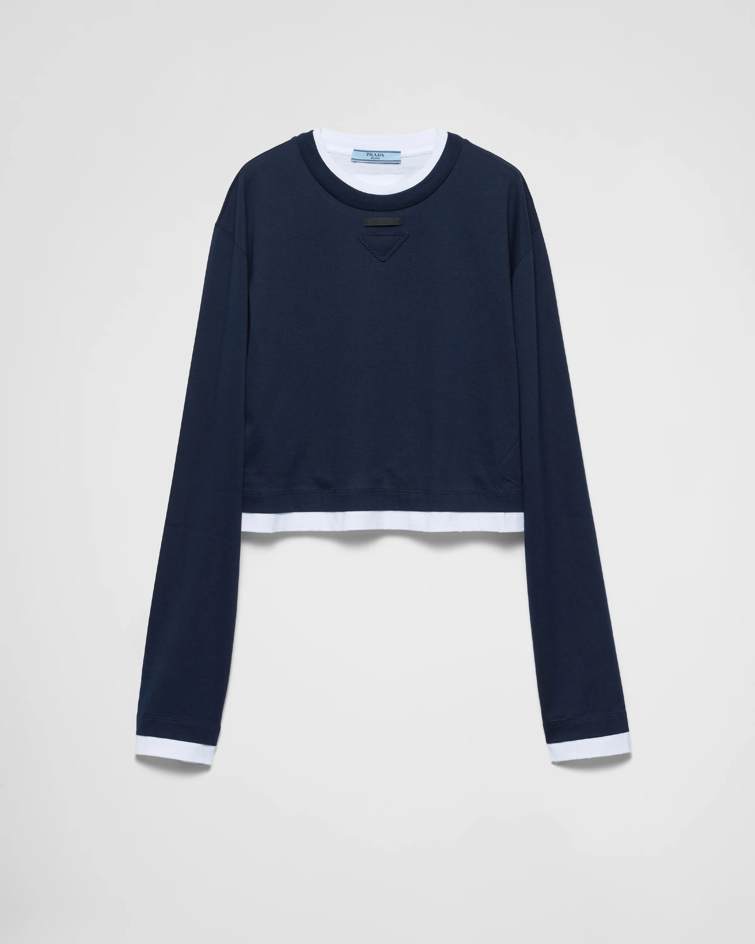 This long-sleeved T-shirt with a casual attitude features contrasting details and distressed effects that give it a contemporary character. - Product code: 34668_15ZG_F0124_S_OOO - Oversized fit - Ribbed knit crew neck - Long sleeves - Fabric triangle logo with sartorial label - Distressed jersey details in a contrasting color - Imported Height: 48cm MATERIALS Main material: 100% cotton