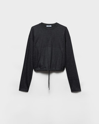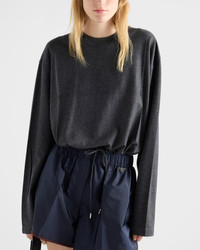 This wool and cashmere jersey tee has a casual design with sporty details. The soft silhouette with drawstring hem is decorated with the tonal triangle logo. - Product code: 34675_186R_F0480_S_OOO - Boxy fit - Ribbed knit crew neck - Long sleeves - Fabric triangle logo - Imported - The model is 180 cm tall and wears a size 38 Height: 54cm MATERIALS Main material: 50% cashmere 50% virgin wool