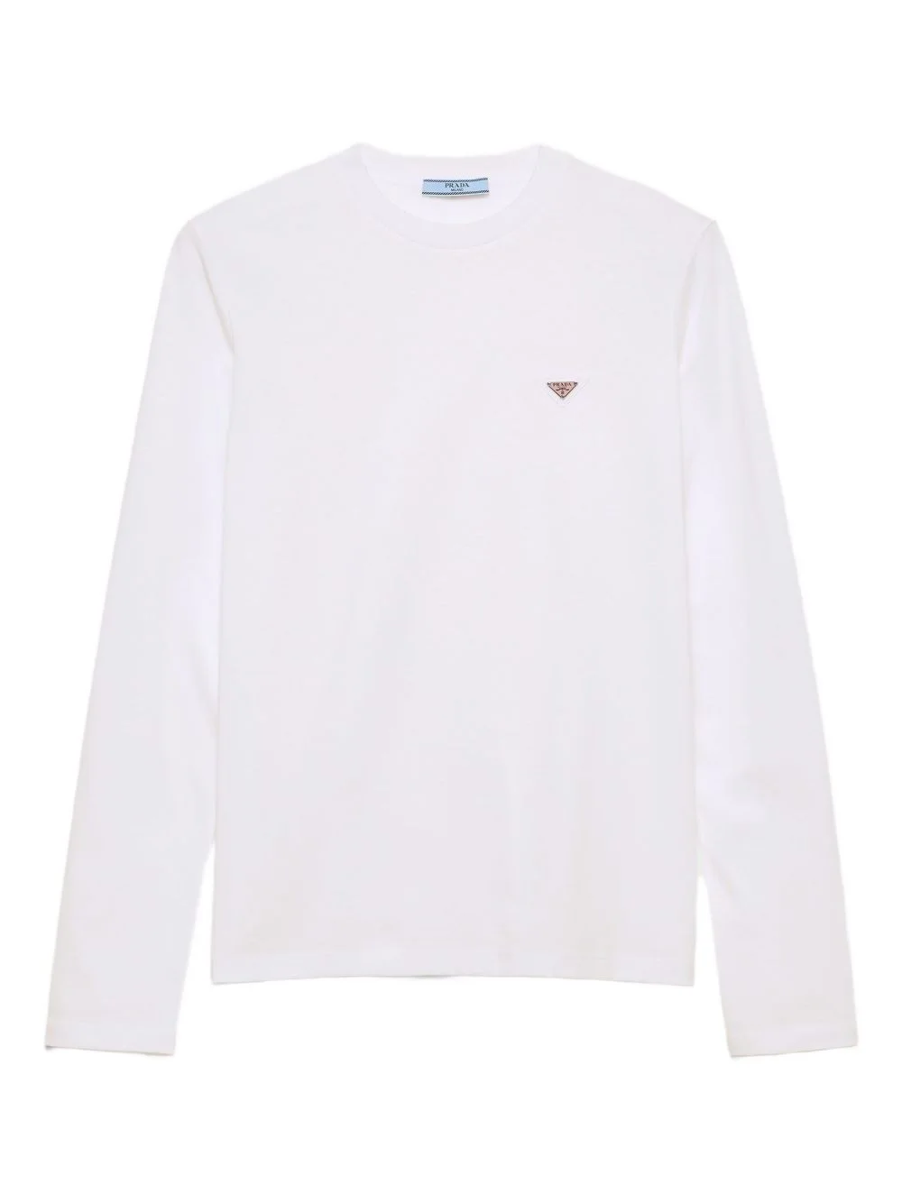 long-sleeved jersey T-shirt Highlights - White - Crew neck - Long sleeves - Triangle logo Composition Cotton 100% Washing instructions Read Manufacturer Guidelines