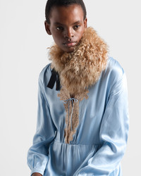 This satin crepe dress embodies sophisticated, timeless femininity. The elegant sheen of silk defines a light, fluid silhouette completed by the romantic delicacy of lace embellishing the neckline. - Product code: P3Q31_170Q_F0AE7_S_OOO - Unlined garment - Lace-trimmed V-neck - Long sleeves - Flared hem - Imported - The model is 177 cm tall and wears a size 38 Height: 120cm MATERIALS Main material: 100% silk