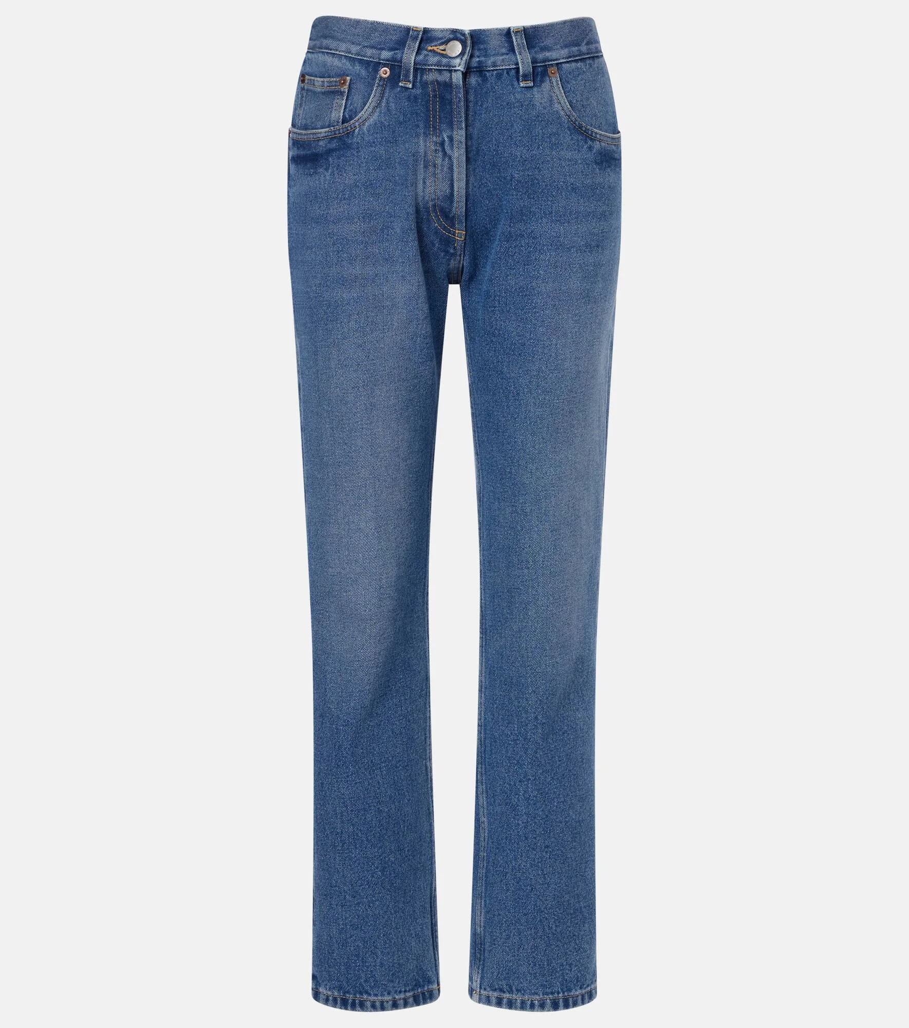 Prada takes Italian heritage into a distinctly modern direction with a streamlined and fashion-forward approach. Crafted in Italy, these straight jeans feature a low-rise waist and pockets. Product Details - Material: 100% cotton - Care instructions: machine wash - Made in Italy - Designer color name: Blue - Item color: blue - Closure: zip and button fastening - Pockets: five pockets - Item number: P01092819 Size & Fit - True to size - Non-stretchy fabric - Straight leg - Low-rise - The model seen in the picture is 178cm-5'10" and wearing a size 26