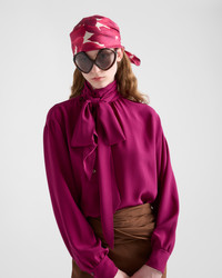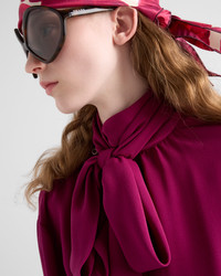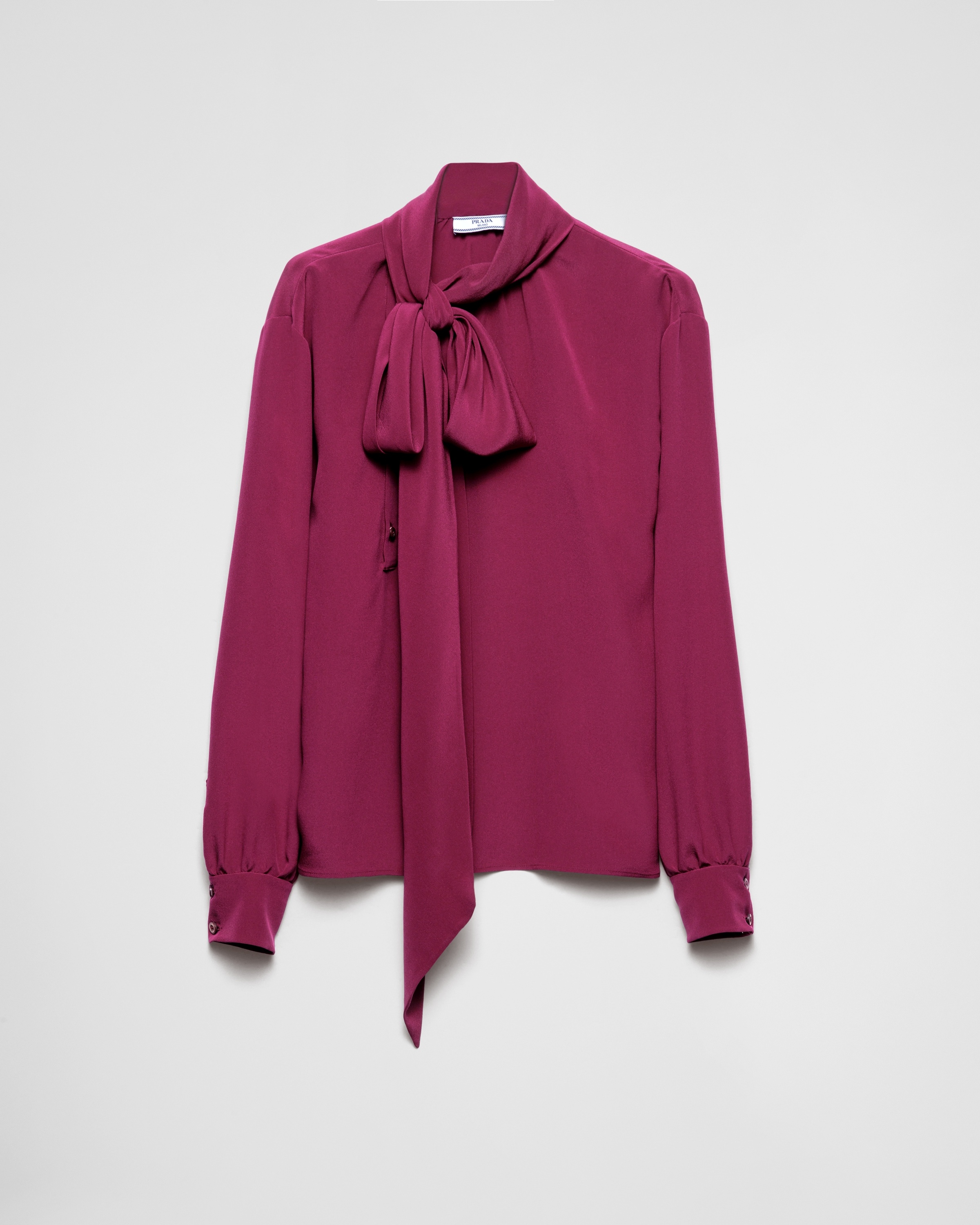 This shirt made of fine marocain silk has a sophisticated silhouette characterized by the offset button closure and elegant scarf collar. - Code du produit: P986M_167C_F0566_S_OOO - Straight fit - Wide band collar with scarf - Side button closure - Sleeves with shirt cuffs - Straight hem - Importe - The model is 176 cm tall and wears a size 38 Taille: 60cm MATERIALS Matiere principale: 100% silk