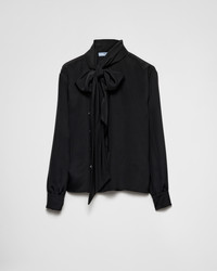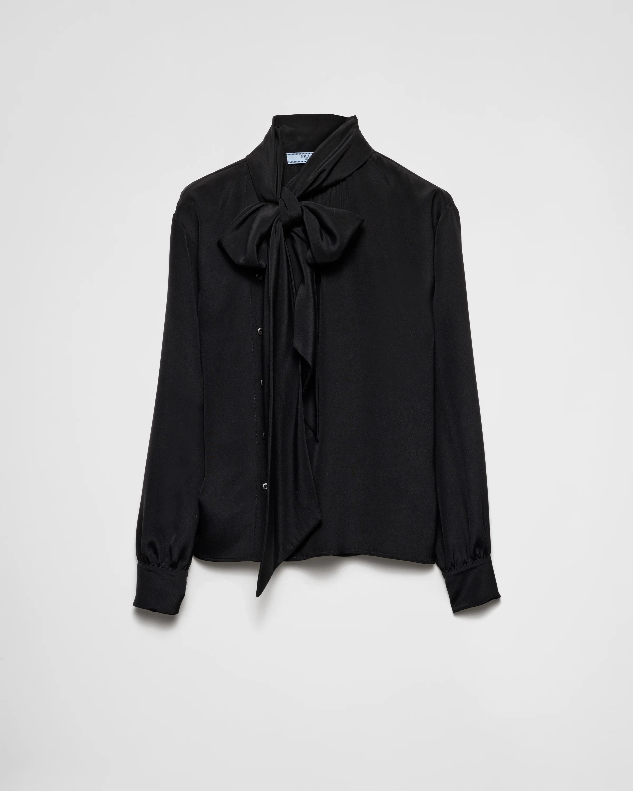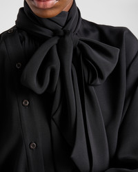 This fluid and sophisticated marocain shirt has a deconstructed design with offset buttons that enrich the silhouette with an unexpected touch. - Product code: P420I_167C_F0002_S_OOO - Straight fit - Unlined - Scarf collar - Front button closure - Sleeves with cuffs and buttons - Straight hem - Imported - The model is 177 cm tall and wears a size 38 Height: 60cm MATERIALS Main material: 100% silk