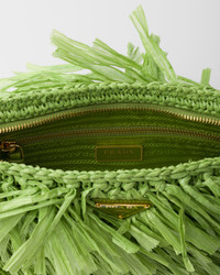 A deconstructed design with colorful fringe characterizes this clutch with romantic charm that evokes summer. - Product code: 1BF073_2HG2_F0394_V_OVO - Detachable, adjustable leather shoulder strap. Maximum length 105 cm - Minimum length 95 cm - Maximum drop 55 cm - Minimum drop 50 cm - Metal hardware - Enameled metal triangle logo on the front - Zipper closure - Logo-print nylon lining with patch pocket - Imported Height: 17cm Width: 30cm MATERIALS Main material: Viscose
