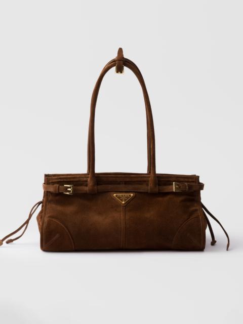 This pragmatic and refined handbag is made of soft leather with a glossy finish that emphasizes its versatile, modern allure. The geometric design blends different influences into one style with a distinctive but sleek aesthetic. Embellished by the sophisticated strap detail, the rectangular silhouette has zipper pockets inside. The enameled metal triangle logo completes the look with its iconic signature. - Product code: 1BA426_2CYR_F0002_V_MOO - Leather handles, 22 cm drop - Detachable, adjustable shoulder strap Maximum length 125 cm - Minimum length 105 cm - Maximum drop 60 cm- Minimum drop 50 cm - Metal hardware - Enameled metal triangle logo on the front - Zipper closure - Logo-print nylon lining with zipper pocket - Imported Height: 15.5cm Width: 32cm Length: 12cm MATERIALS Main material: Calfskin