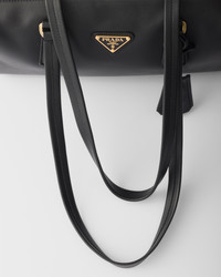 This soft leather bag stands out for its harmonious blend of classic and modern elements. The zipper closure with lock adds a touch of sophistication, while the enameled metal triangle logo provide a subtle yet distinctive accent. - Codice articolo: 1BB127_2CYS_F0002_V_ODO - Leather handles, drop 28 cm - Removable leather keyring - Metal hardware - Enameled metal triangle logo on the front - Zipper closure with small lock - Nappa leather lining with zipper pocket - Importato Altezza: 12.5cm Larghezza: 29cm Lunghezza: 10cm MATERIALS Leather