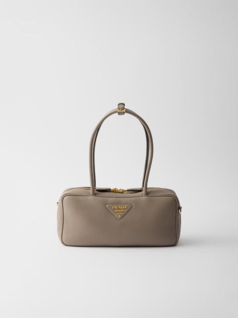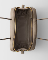 This leather top-handle bag features a modern design with refined details and a versatile style. Its sleek geometric silhouette, complemented by long handles for effortless wear on the shoulder, is enhanced with metal logo lettering. - Product code: 1BB126_2DKV_F0JDS_V_ONO - Leather handles, drop 20 cm - Adjustable and removable leather shoulder strap. Maximum length 115 cm - Minimum length 105 cm - Maximum drop 57 cm - Minimum drop 52 cm - Metal hardware - Metal lettering logo on the front - Zipper closure - Nappa leather lining with zipper pocket - Imported Height: 13cm Width: 28cm Length: 8cm MATERIALS Main material: Calfskin