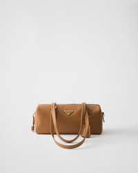 This soft leather bag stands out for its harmonious blend of classic and modern elements. The zipper closure with lock adds a touch of sophistication, while the enameled metal triangle logo provide a subtle yet distinctive accent. - Product code: 1BB127_2CYS_F03BH_V_ODO - Leather handles, drop 28 cm - Removable leather keyring - Metal hardware - Enameled metal triangle logo on the front - Zipper closure with small lock - Nappa leather lining with zipper pocket - Imported Height: 12.5cm Width: 29cm Length: 10cm MATERIALS Leather