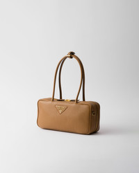 This leather top-handle bag features a modern design with refined details and a versatile style. Its sleek geometric silhouette, complemented by long handles for effortless wear on the shoulder, is enhanced with metal logo lettering. - 제품 코드: 1BB126_2DKV_F03V8_V_ONO - Leather handles, drop 20 cm - Adjustable and removable leather shoulder strap. Maximum length 115 cm - Minimum length 105 cm - Maximum drop 57 cm - Minimum drop 52 cm - Metal hardware - Metal lettering logo on the front - Zipper closure - Nappa leather lining with zipper pocket - 가져오기 높이: 13cm 폭: 28cm 길이: 8cm MATERIALS 주 소재: Calfskin