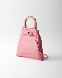 The harmony between futuristic shapes and vintage touches defines this leather bag with sophisticated details. The elegant design, in which classical elements and contemporary notes coexist, is completed by a refined turn-lock clasp taken from Prada archives. - Product code: 1BG567_2HIA_F02YN_V_KOO - Leather handles - Metal hardware - Lettering logo stamped on the front - Strap and turn-lock clasp closure - Nappa interior with zipper pocket - Imported Height: 30cm Width: 31cm Length: 6.5cm MATERIALS Main material: Calfskin
