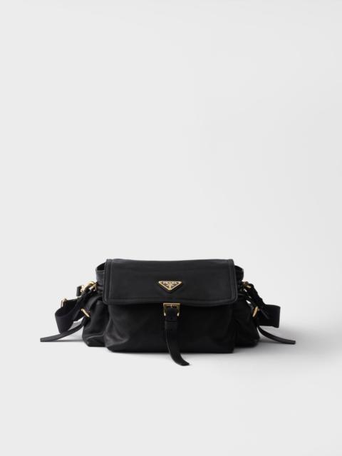 The Explore bag, a perfect synthesis of sophistication functionality, has a soft, multi-pocket silhouette. Nappa leather, treated to create a vintage look, adds depth to the versatile design completed with refined and iconic details that reflect Prada's artisan tradition. - Product code: 1BD394_2DX8_F0038_V_NOO - Nappa leather handle, length 52 cm, drop 28 cm - Detachable, adjustable logo-print woven tape shoulder strap. Maximum length 104 cm - Minimum length: 74 cm - Maximum drop 50 cm - Minimum drop 35 cm - Front zipper pocket - Flapped side pockets - Metal hardware - Enameled metal triangle logo on the flap - With zipper, flap and buckle closure - Logo-print nylon lining with patch pocket - Imported Height: 14cm Width: 30cm Length: 10cm MATERIALS Main material: Lambskin