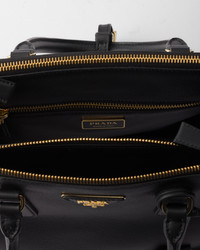 The sophisticated and timeless Prada Galleria bag blends industrial precision and the refined accuracy of craftsmanship inherent in the brand's DNA. Composed of more than 80 individual pieces assembled by hand, the style celebrates the historic store opened in 1913 in Galleria Vittorio Emanuele II of Milan. The leather accessory characterized by the iconic three pockets and gold-tone metal hardware is completed by the emblematic triangle logo. - Product code: 1BA863_2CYS_F0002_V_YO0 - Leather handles - Detachable, adjustable leather shoulder strap. Maximum length 120 cm - Minimum length 110 cm - Maximum drop 60 cm- Minimum drop 55 cm - Removable leather key ring - External zipper pockets - Metal hardware - Leather triangle with metal lettering logo on the front - Snap closure on the sides - Nappa leather interior with two pockets, including one with zipper - With purse feet - Imported Height: 19.5cm Width: 28cm Length: 12cm MATERIALS Main material: Calfskin