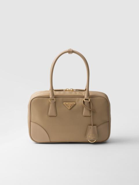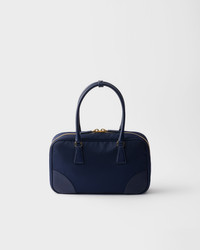 An archive silhouette with timeless appeal is presented in Re-Nylon, the sustainable evolution of a distinctive material of the brand. The two-handle bag made of regenerated nylon is enriched with Saffiano leather details in a perfect synthesis of Prada's stylistic codes, able to subvert the traditional perception of luxury. Between the pragmatic touches and sophisticated details, the enameled metal triangle logo decorates the accessory with its distinctive signature note. This product does not contribute to the SEA BEYOND educational program. - Product code: 1BB115_R064_F0216_V_TOO - Leather handles - Detachable adjustable leather shoulder strap, length 110 cm - Removable Re-Edition leather key ring - Metal hardware - Enameled metal triangle logo on the front - Zipper closure - Logo-print Re-Nylon lining with two pockets, including one with zipper - With purse feet - Imported Height: 17.5cm Width: 30cm Length: 9cm MATERIALS Main material: Recycled polyamide