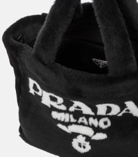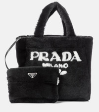 Prada reboots your accessories for the cooler months with this medium-sized tactile shearling tote. Illuminated with logo detailing, it comes with a removable triangular logo pouch, and can be carried by a slim detachable leather shoulder strap. Swing yours alongside the label's sweaters. Product Details - Comes with dust bag - Made in Italy - Designer color name: Nero+Bianco - Color of fastening: silver - Closure: open top - Material: lamb fur - Detachable, adjustable shoulder strap, Top handles - Internal details: fabric lining, internal zipped pouch - Item number: P00541440 Size & Fit - Height 26cm-10" - Width 29cm-11.5" - Depth 14cm-5.5" - Length of handles 34cm-13.5" - Min. length shoulder strap 97cm-38" - Max. length shoulder strap 107cm-42" - Clutch height 15cm-6" - Clutch width 20cm-8"