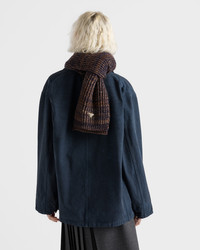 This soft, sophisticated scarf is made with a fine blend of wool and cashmere. The nuances of the melange knit gives the accessory distinctive style. - Product code: 1FS131_2HMD_F0XB7 - Enameled metal triangle logo - Fisherman's rib knit - 70% wool 30% cashmere - Imported Height: 180cm Width: 20cm MATERIALS Main material: Cashmere virgin wool