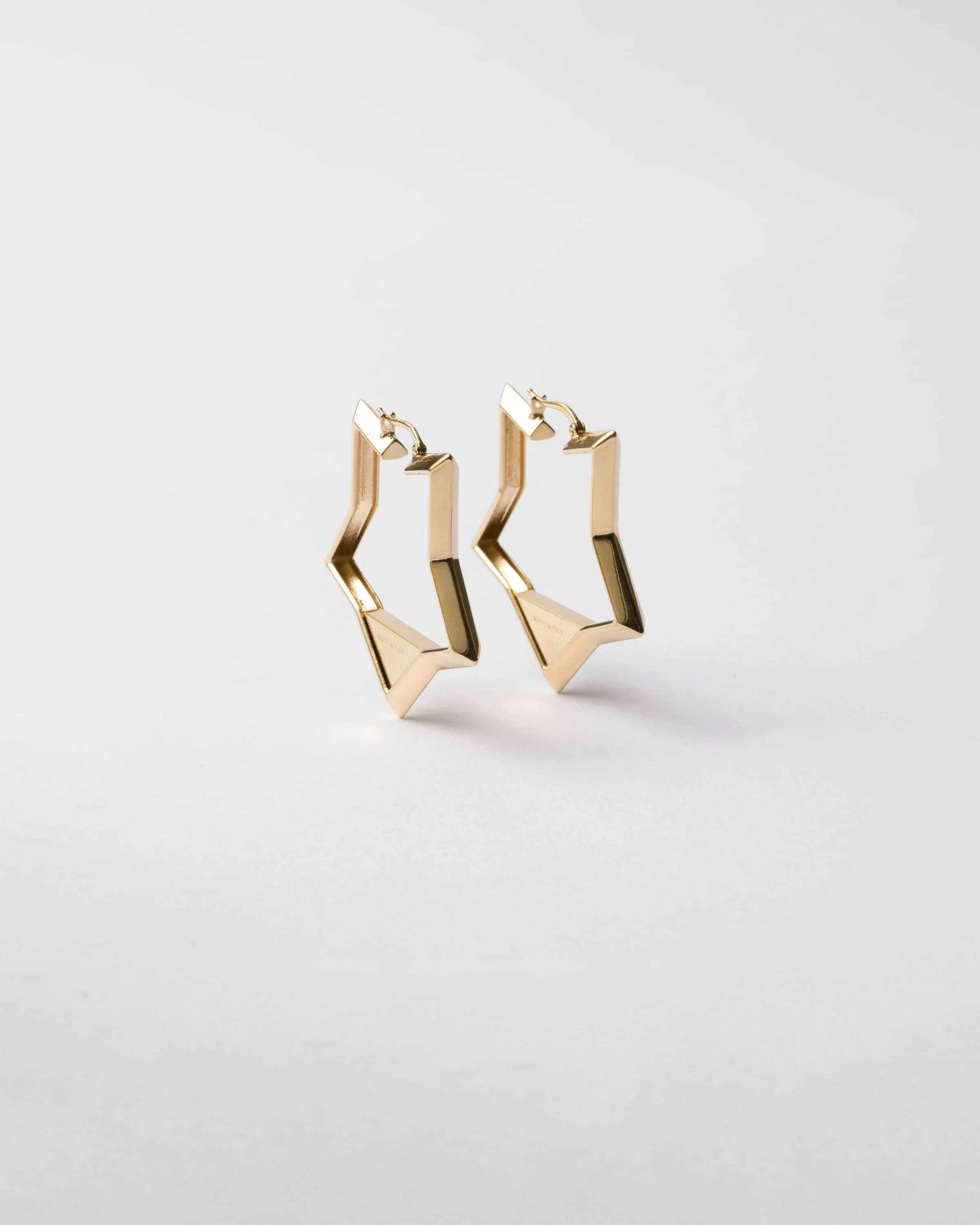 These sleek, elegant earrings with iconic details have a geometric design embellished with the triangle logo. - Product code: 1IO147_2C41_F0056 - For pierced ears - Metal triangle logo - Imported MATERIALS Other Materials
