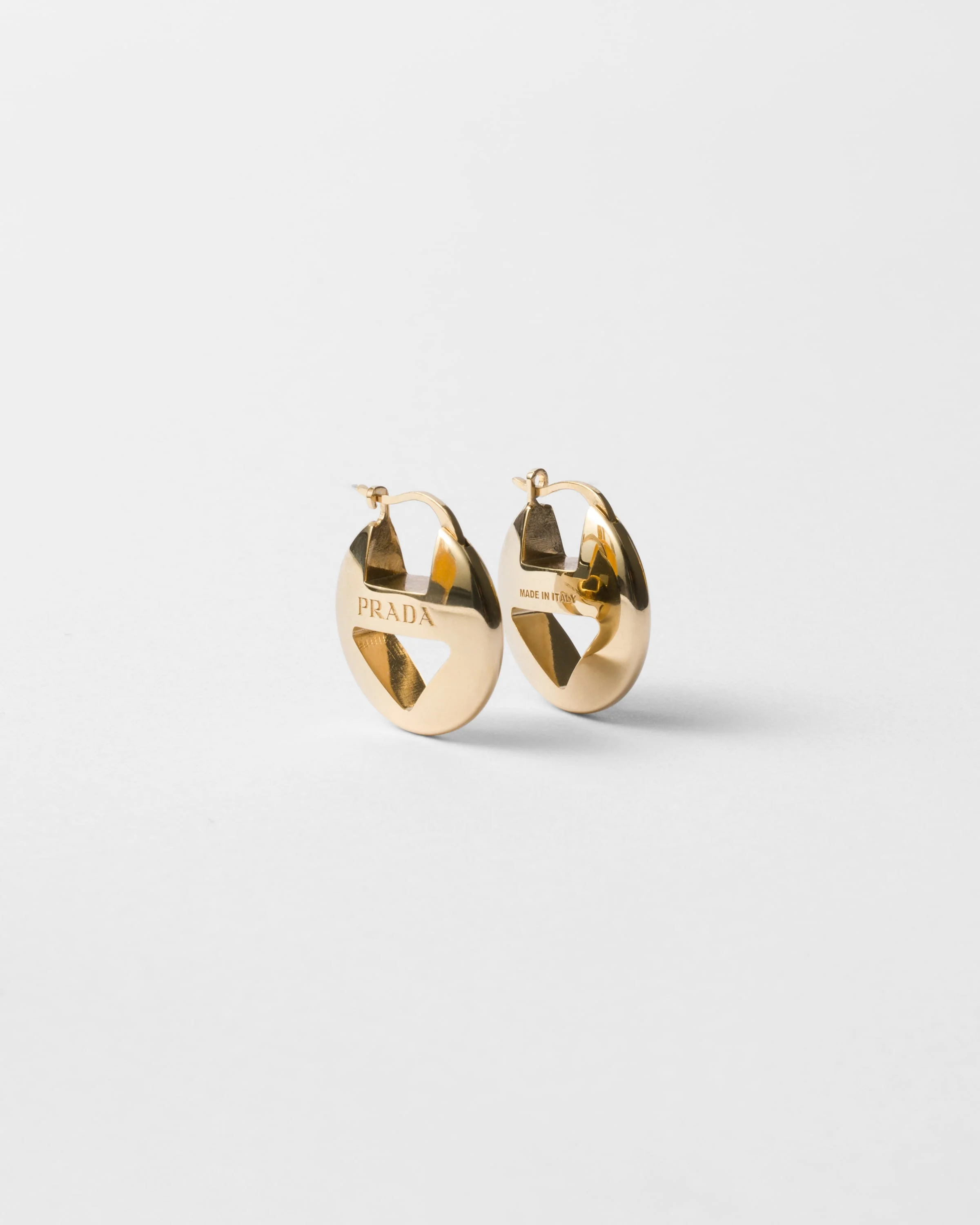 These sleek, elegant earrings with iconic details are animated by cut-outs that reproduce the unmistakable geometric shape of the Prada triangle. - Product code: 1IO137_2C4D_F0056 - For pierced ears - Engraved logo - Imported MATERIALS Other Materials