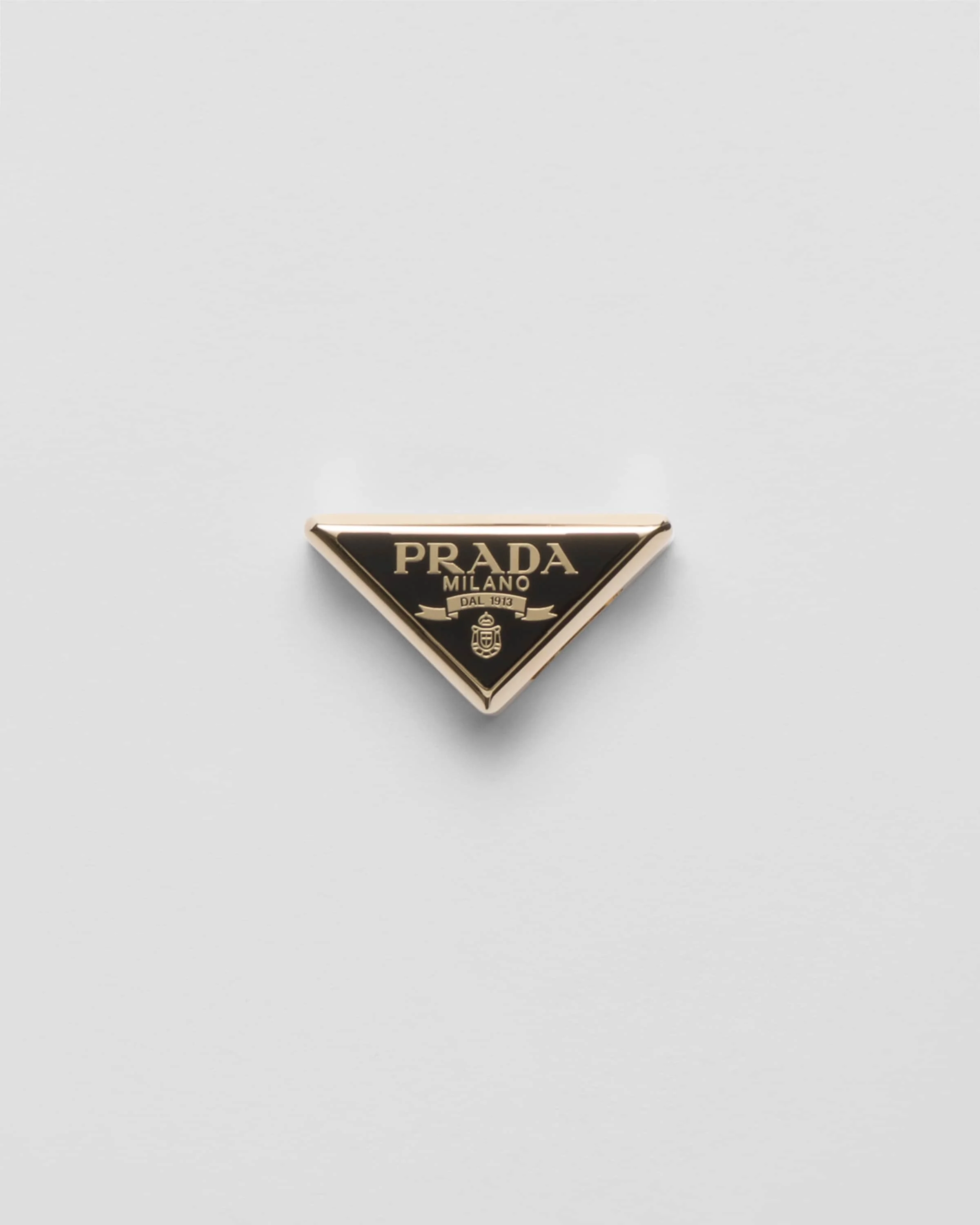 The distinctive and universal Prada triangle logo is presented in always new and contemporary versions. The iconic geometric shape outlines this refined enameled metal scarf clip. - Product code: 1FF030_2BA6_F0002 - Enameled logo - Imported MATERIALS Main material: Brass