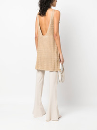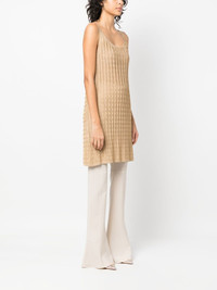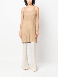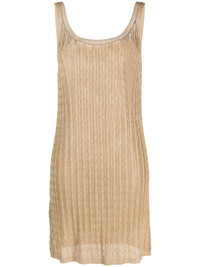 knitted sleeveless midi dress gold-tone metallic finish fine knit V-neck sleeveless Composition Viscose 72%, Metallic Fibre 28% SIZE & FIT Model measurements Height 5 ft 9 in(1.76 m) Bust/Chest 31.88 in(81 cm) Hips 35.43 in(90 cm) Waist 24.8 in(63 cm) FittingInformation This piece fits true to size. We recommend you get your regular size Cut for a loose fit Made with a mid-weight fabric